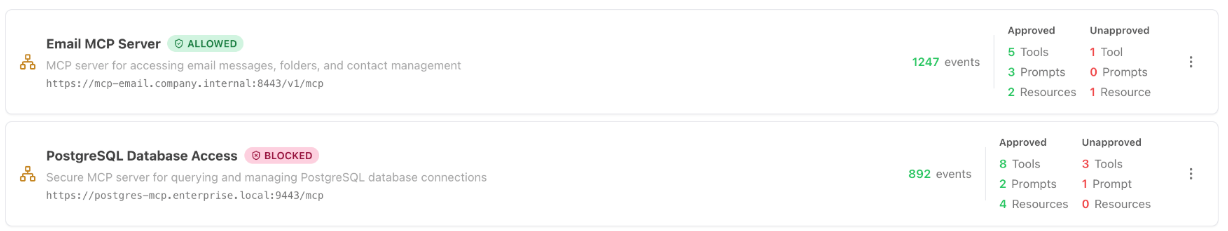Per PulseMCP, there are more than 7,000 publicly available MCP servers. So while a legitimate MCP server might be named “internal-search-mcp,” an illegitimate one might be closely named “internal-search-mcp-v2.” One faulty configuration can enable a malicious MCP server to quietly log prompts and tool inputs to an external location or inject hidden instructions to trigger unsafe actions.