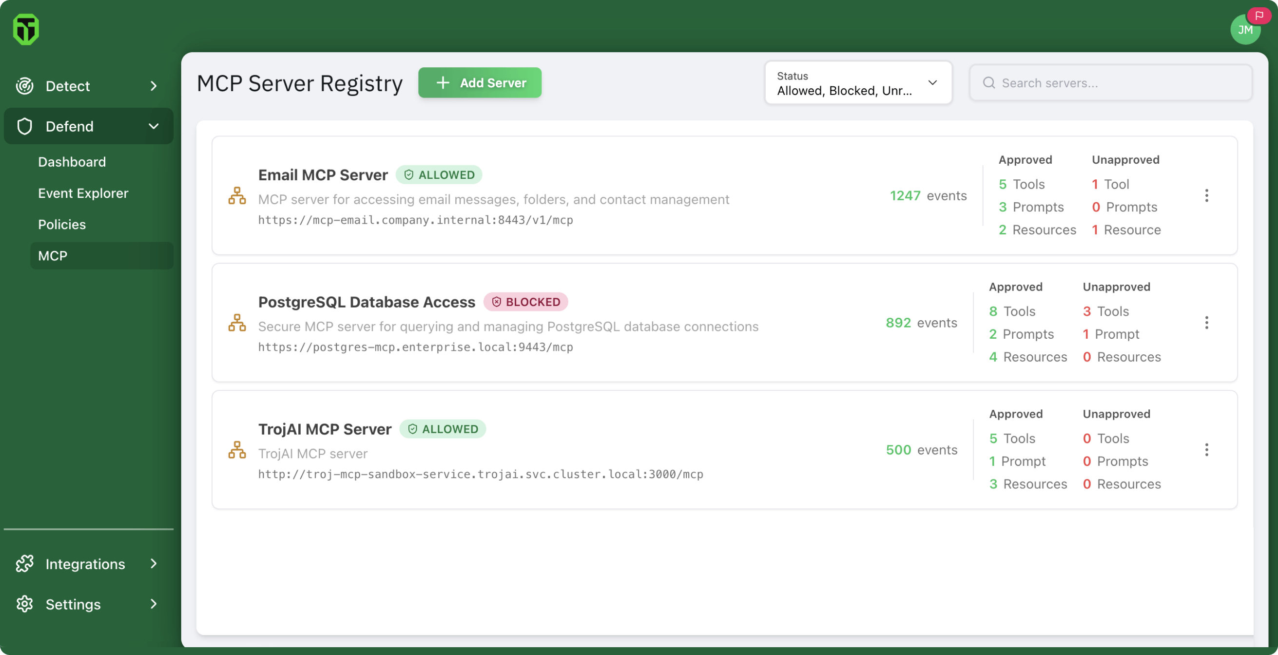 Automatically block traffic from unapproved tools or MCP servers outside approved paths